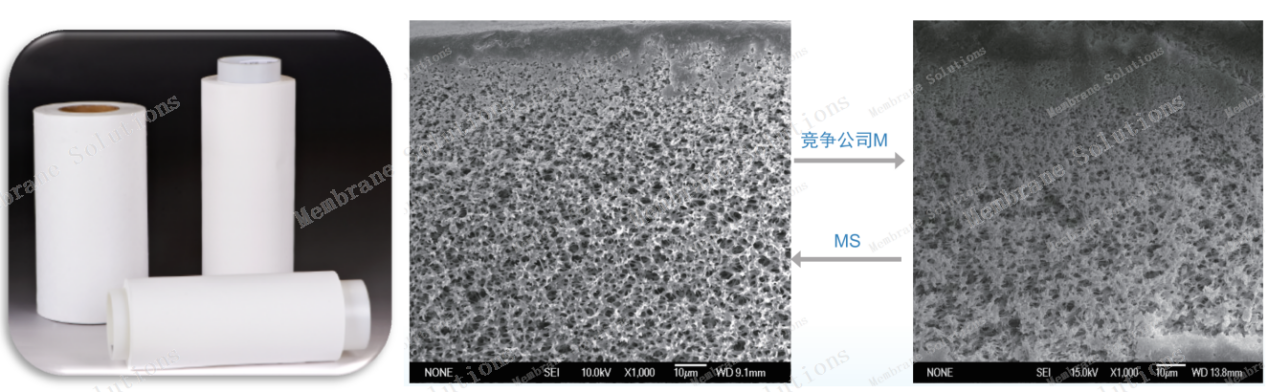 | 1、獨立自主的膜生產工藝 邁博瑞的PES膜采用獨特的工藝生產而成,具有超不對稱的膜孔結構,而且同樣的孔徑之下,相比較其他膜具備更高的水通量,更低蛋白吸附特性。 |