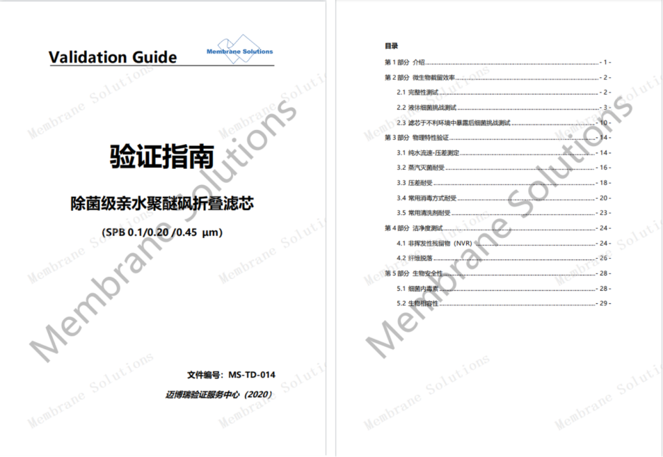 | 2、PES濾芯全產品線 邁博瑞聚醚砜(PES)折疊濾芯是采用非對稱聚醚砜濾膜為濾材,能夠提供穩定可靠的除菌、除顆粒的過濾性能,具有超低的蛋白吸附及溶出/析出水平,孔徑分布均勻、出色的細菌截留能力,出色的高初始通量,且邁博瑞除菌級濾芯建立了完整性數值與細菌挑戰進行關聯,可為客戶提供一整套的驗證指南服務。 |